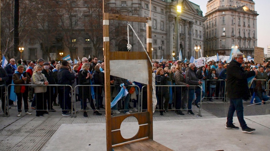 Los dos interlocutores son integrantes de la organización antikirchnerista que organizó intervenciones violentas contra el oficialismo y que instaló guillotinas y horcas en las manifestaciones de la oposición intercambiaron también insultos y amenazas contra el presidente Alberto Fernández.