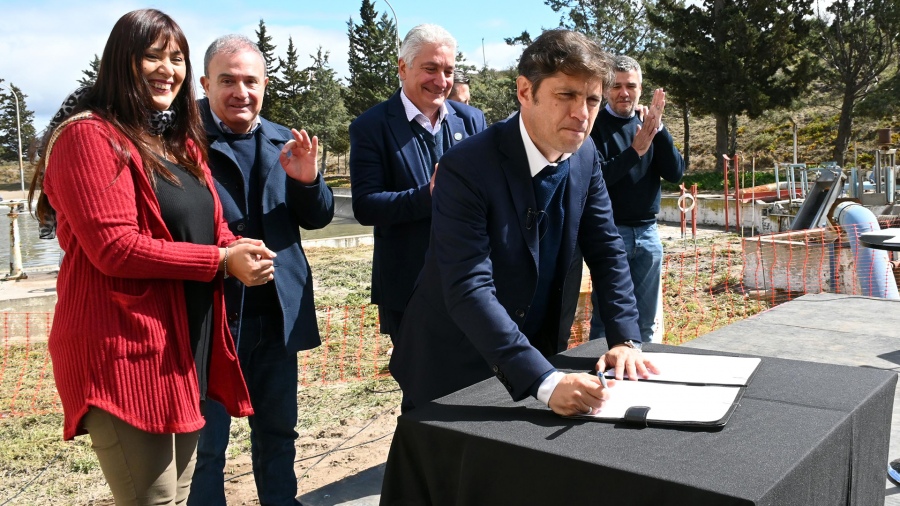 El gobernador de la provincia de Buenos Aires, Axel Kicillof, recorrió las obras de la nueva planta de tratamiento de líquidos cloacales de Aguas Bonaerenses SA (Absa) que requiere de un presupuesto estimado en 1.000 millones de pesos en el partido de Carmen de Patagones.