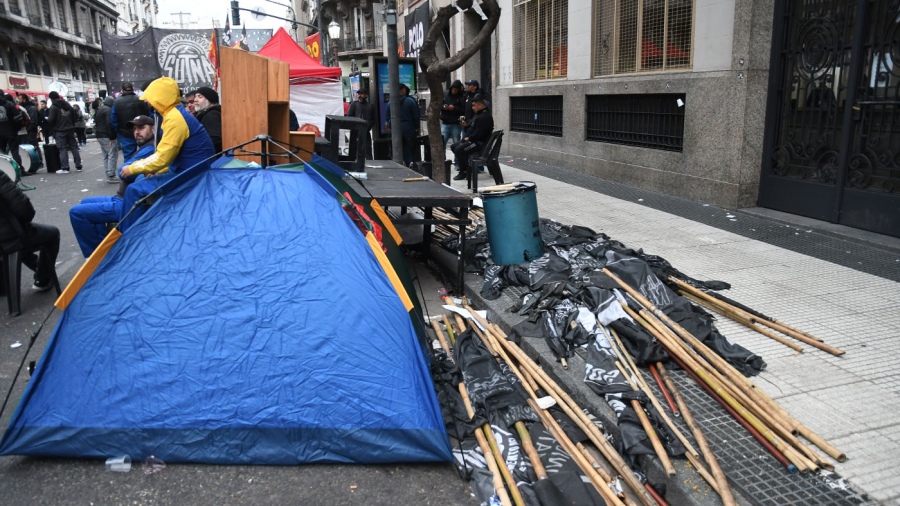 El gremio inició en las últimas horas un paro de actividades por tiempo indeterminado en sus tres plantas, una medida que fue acompañada con un acampe frente a esa sede de la cartera laboral, donde un grupo de delegados incluso permaneció en uno de los pisos del edificio.