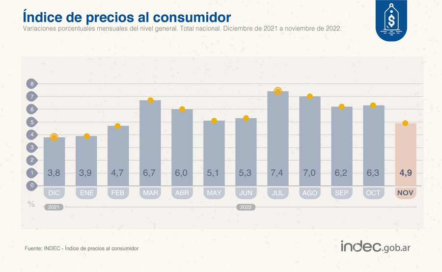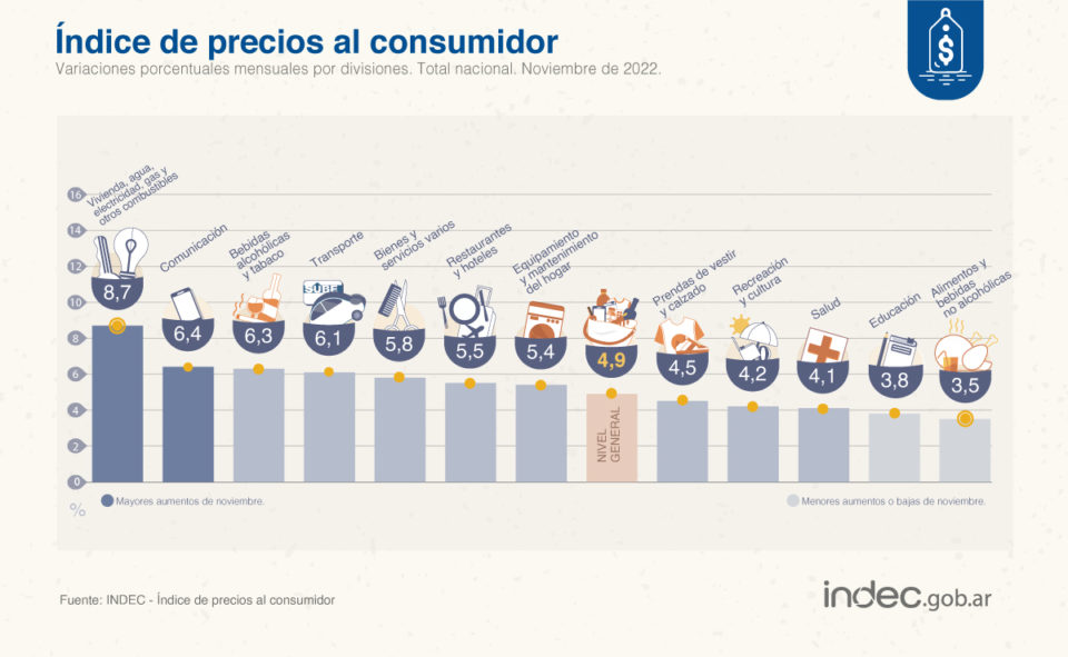 El plan antiinflacionario del Gobierno comenzó a tomar fuerza en noviembre y su objetivo de llegar al mes de abril con una cifra promedio del 3% empieza a tornarse realista. Sin embargo, el dato más relevante fue que los alimentos aumentaron 3,5%, sensiblemente por debajo de la variación del mes anterior (6,2%) e incluso por debajo de la expectativa planteada por el Frente de Todos (4%). De esta forma, los productos que componen la canasta básica registraron el menor incremento en un año.