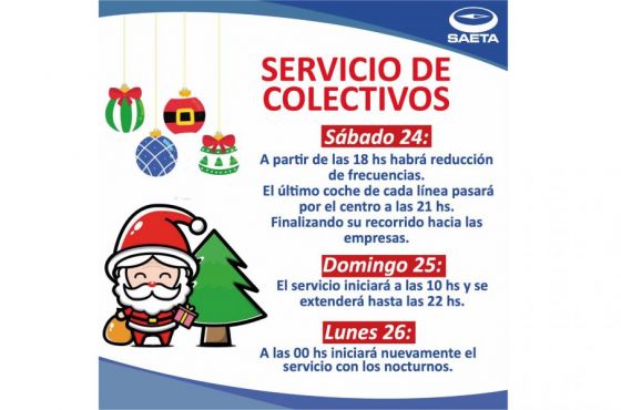Servicio de colectivos para Noche Buena y Navidad