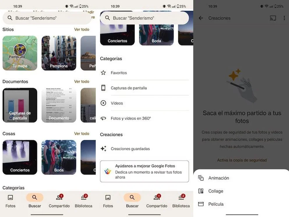 Dentro de los contenidos incluidos en este menú, los usuarios podrán ubicar el apartado “Creaciones” y la opción de Creaciones Guardadas, que llevarán a los usuarios a una nueva ventana dentro de la aplicación y que estará orientada específicamente a la autogeneración de “películas” temáticas que pueden utilizarse para coleccionar selfies, imágenes por el día de la madre, por el día del padre, San Valentín, etc.