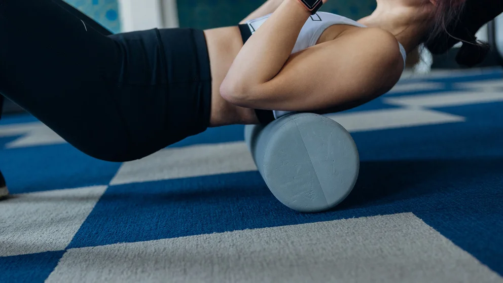 Consiste en acostarse en el piso con un rollo colocado a la altura de la columna dorsal.