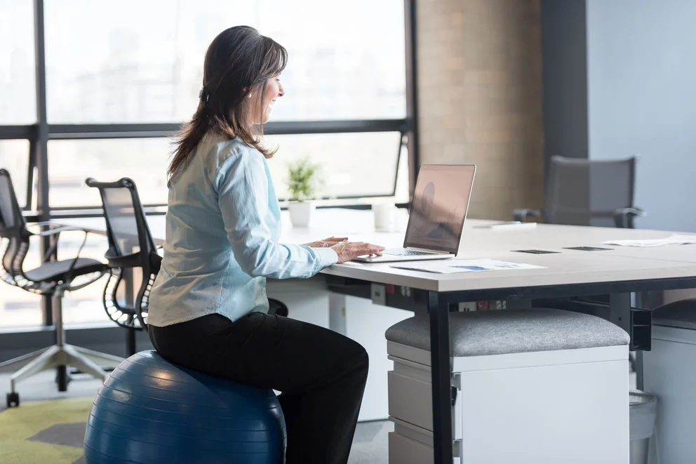 Los fitball son las pelotas de goma rellena de aire de gran tamaño que se utilizan para realizar ejercicios físicos. Sentarse un rato mientras se trabaja frente a la computadora hará cambiar la postura en forma permanente por lo tanto se evitará la posición quieta que tanto mal hace