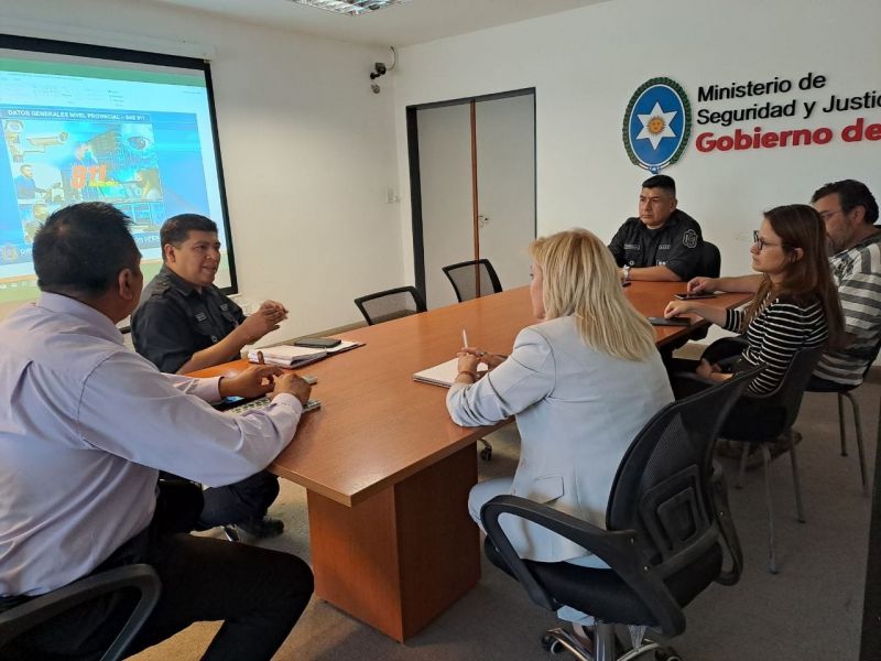 La reunión se llevó a cabo en el Sistema de Emergencias 911. Participaron Vicente Ceballos y Nadia Flores, autoridades de la Subsecretaría.