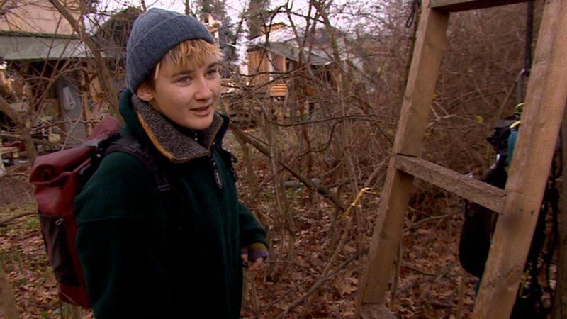 “Así es mucho más difícil para la policía desalojarnos”, dice la joven. “Tenemos cuerdas entre las casas de los árboles para poder movernos de una a otra”.