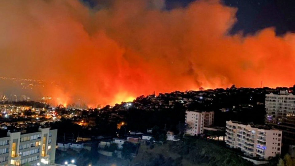 Chile decreto “ALERTA ROJA” en la zona central del país antes la ola de calor que causo 39 incendios forestales de gran magnitud.
