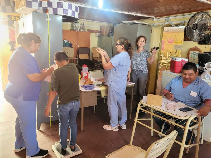 Profesionales del nosocomio brindaron asistencia en la escuela primaria del paraje, donde confeccionaron certificados de apto físico y completaron esquemas de inmunización, entre otras prestaciones.