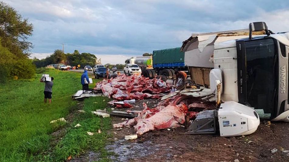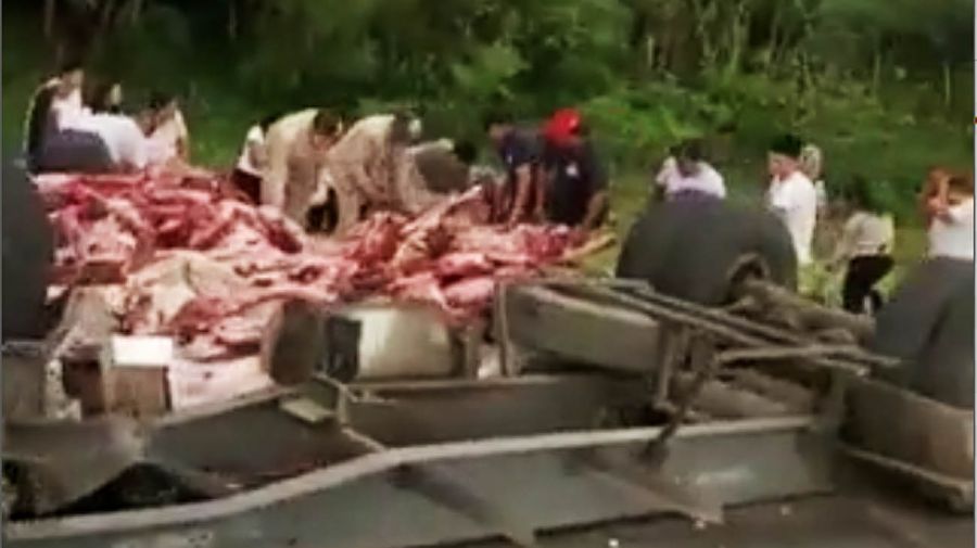 Un impactante siniestro vial tuvo lugar en Salta, cuando un camión frigorífico que transportaba 23 mil kilos de carne perdió el control y protagonizó un choque con un automóvil que venía en sentido contrario, en la ruta nacional 9. En ese momento, cuando los cortes que se hallaban en el chasis del rodado quedaron tendidos sobre el pavimento, un grupo de personas aprovechó para realizar un saqueo “tipo piraña”.