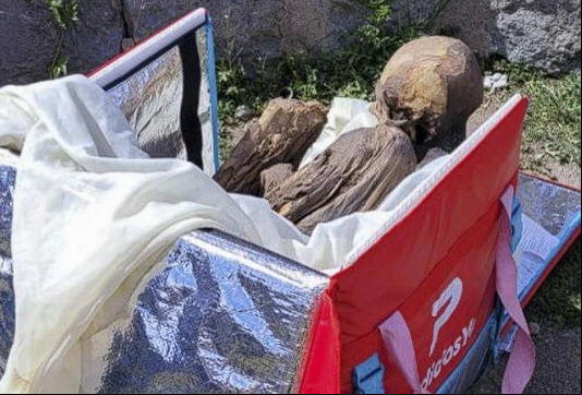 Un hombre fue detenido cuando la policía de Perú descubrió que tenía una momia prehispánica guardada en una mochila de delivery. El joven declaró que estaba en su casa desde hace casi tres décadas. “Es como mi novia espiritual”, aseguró Julio César Bermejo a un medio local.