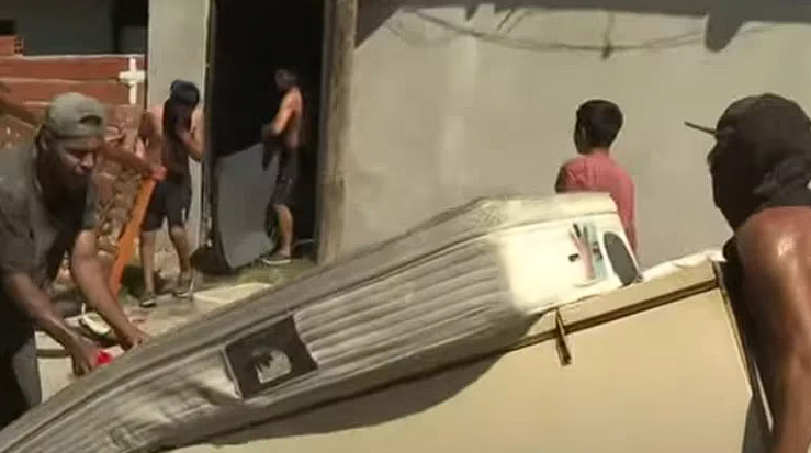 Una de las piedras que arrojaban los vecinos le golpeó en la cabeza y le provocó una herida en el rostro. Con martillos y otros elementos contundentes, la gente rodeó la propiedad. Con los minutos, se sumaron más personas que luego saquearon el lugar y rompieron las paredes de la vivienda hasta destrozarla.