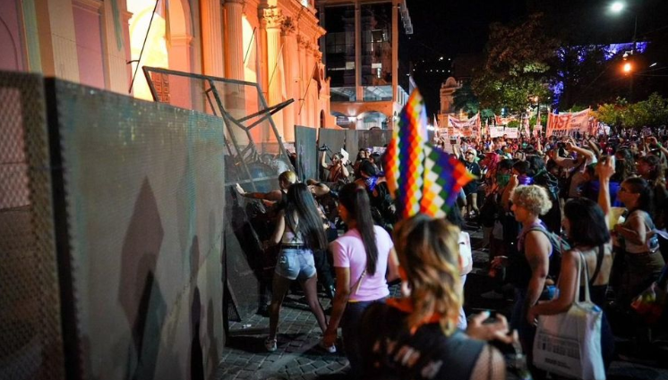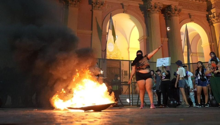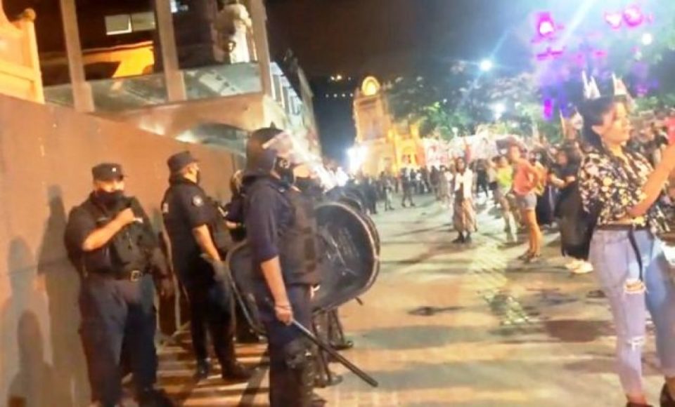 Además, sobre el frente de la iglesia prendieron fuego algunos elementos que lograron sustraerle a los uniformados, mientras se entonaban cánticos en contra de la Iglesia. Luego de los momentos de tensión, las manifestantes se dirigieron al Cabildo y allí se dispersaron.