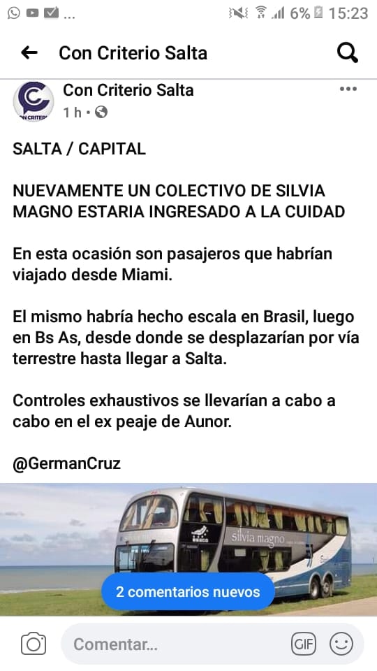 En contraste, la mujer con la que mantenía este diálogo le aportó la presunción que “al resto de los pasajeros” intentaron alojarlos en un hotel ubicado en Campo Quijano, lo cual chocó con la negativa de Cali Folloni ya que “el intendente prohibió el ingreso del colectivo al pueblo”.