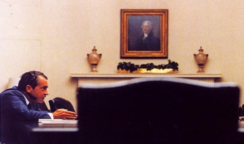 Capellán relata “Pero no es ésta la razón de este artículo. En realidad, me motiva el “Sortilegio Nixon”. Comencé a caminar por un corredor de la Residencia y me metí en una Sala de Reuniones que me pareció atractiva”