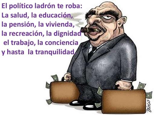 2. El Político te roba: La salud, la vivienda, la educación, la pensión, la recreación, el trabajo y hasta la conciencia.1. El primer ladrón te elige A VOS! 2. Al político candidato el 15 de agosto ¡LO ELEGIS VOS!