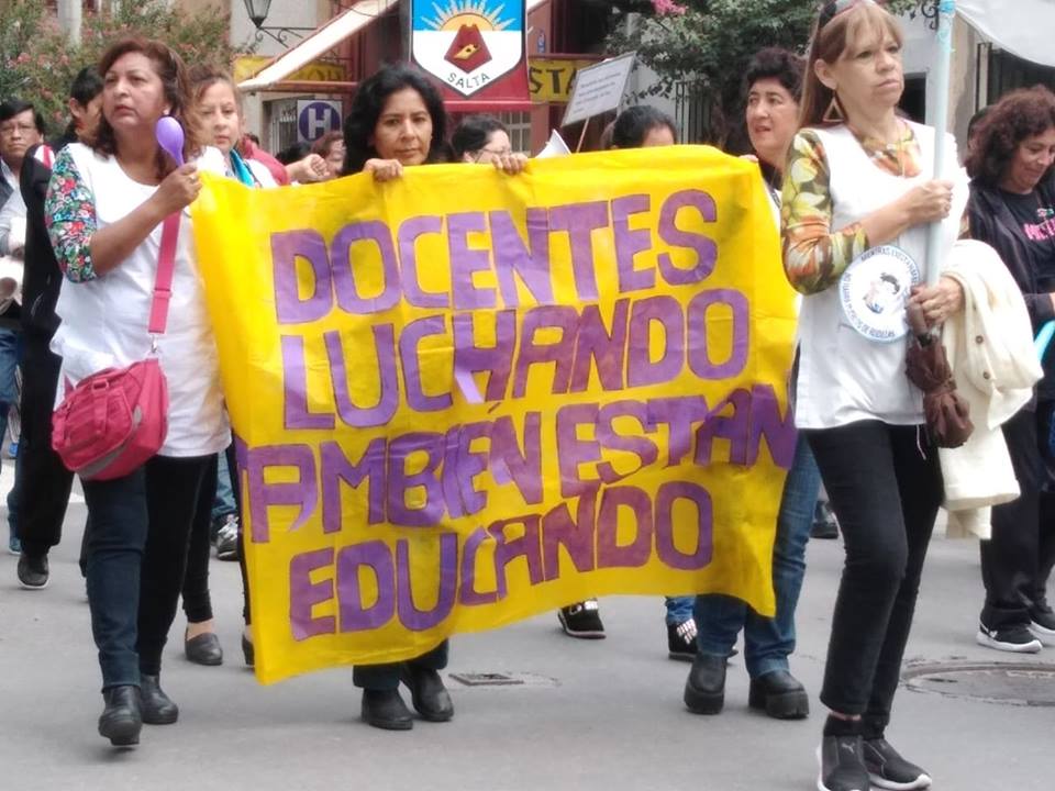 Sigue adelante el reclamo de docentes en la provincia de Salta, más puntualmente los del frente conformado por SiTEPSa y autoconvocados quienes continúan con la medida de fuerza por tiempo indeterminado que resolvieron tras el receso invernal. Parte de esta manifestación se concreta en plaza 9 de Julio y en el acceso a la Capital.
