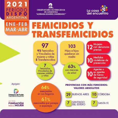 De acuerdo a las últimas estadísticas difundidas por el Observatorio de la organización de mujeres MuMalá, un total de 246 mujeres, travestis y trans sufrieron muertes violentas entre principios de enero y fines de septiembre de este año en Argentina, lo que arroja un promedio un crimen de este tipo cada 26 horas. Esos hechos llevaron a que 168 niños, niñas y adolescentes se queden sin su madre, añade el informe.