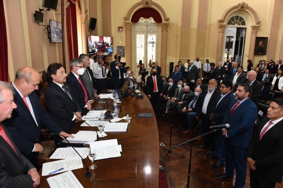 El gobernador Gustavo Sáenz juró la reformada Constitución de Salta, en un acto que se cumplió en la Legislatura salteña. En la misma ceremonia de clausura de la Convención Constituyente, también expresaron su fidelidad a la Carta Magna de la provincia, el vicegobernador y presidente de la Cámara de Senadores Antonio Marocco, el presidente de la Cámara de Diputados Esteban Amat, la presidenta de la Corte de Justicia Teresa Ovejero, la presidenta del Colegio de Gobierno del Ministerio Público, Mirta Lapad, el Auditor General Gustavo Ferraris, además de los miembros de la Convención Constituyente.