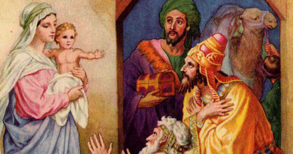 La historia cuenta que los Reyes Magos siguieron una estrella muy resplandeciente con la que buscaban al “Rey de los Judíos que ha nacido” en Jerusalén. Así fue como la estrella los guió hasta Jesús, a quien ofrecen ofrendas de oro, incienso y mirra.