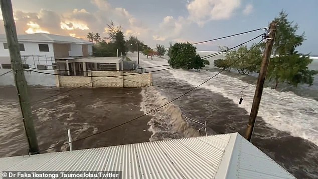 Las grandes olas golpearon casas y edificios ubicados en primera línea de playa e inundaron rápidamente las inmediaciones, según los videos publicados por las redes sociales por testigos que habían tomado refugio en el techo de sus casas. Las autoridades locales han emitido una alerta de tsunami para todo el país tras la erupción del volcán submarino Hunga-Tonga-Hunga-Ha’apai, a unos 65 kilómetros de la isla de Tongatapu, la principal de esta nación insular poblada por unos 71 mil habitantes.