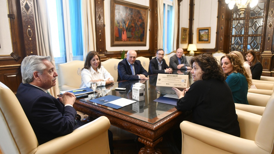 La presentación se realizó esta tarde en Casa Rosada y Fernández estuvo junto a la gobernadora de Río Negro, Arabela Carreras, y la ministra de Salud, Carla Vizzotti, informaron fuentes oficiales.