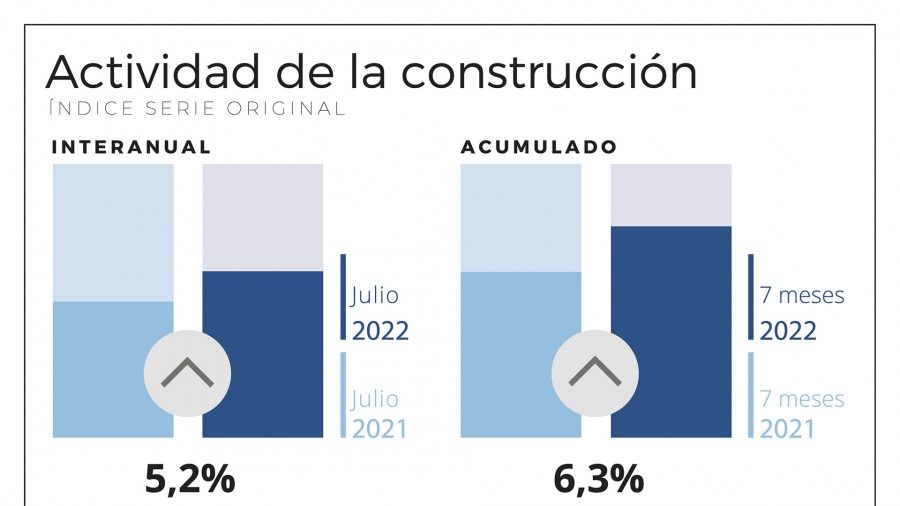 En lo que respecta a la construcción, los datos del consumo aparente de los insumos mostraron en julio subas interanuales de 22,6% en pisos y revestimientos cerámicos; 18,4% en hormigón elaborado; 16,9% en pinturas para construcción; 16,1% en artículos sanitarios de cerámica; 13,8% en el resto de los insumos (incluye grifería, tubos de acero sin costura y vidrio para construcción); 10,9% en placas de yeso; 9,9% en cemento portland; 8,6% en mosaicos graníticos y calcáreos; 7,8% en hierro redondo y aceros para la construcción; 6,9% en yeso; y 5,2% en cales.